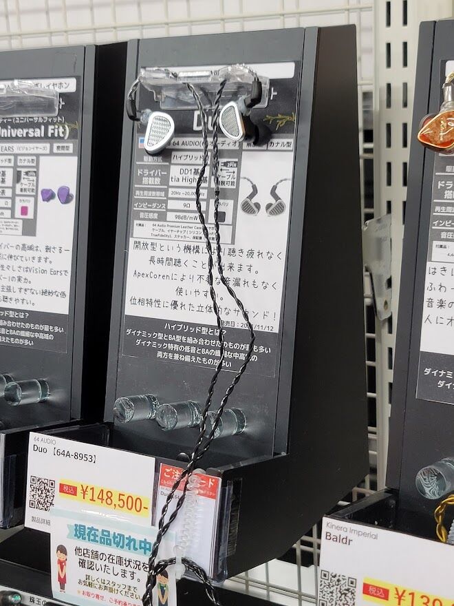 また、短時間の試聴であり、後々評価が覆ることも大いにあります。あくまで試聴、しかも短時間かつ店頭の騒音下での試聴ということで、基本的にアテにならない物と思って見てください。
